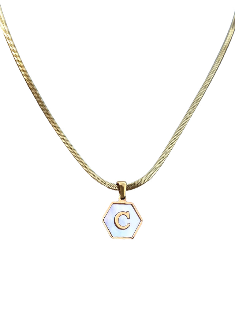 Mother of Pearl Initial Pendant on NON-Tarnish Gold Herringbone Chain