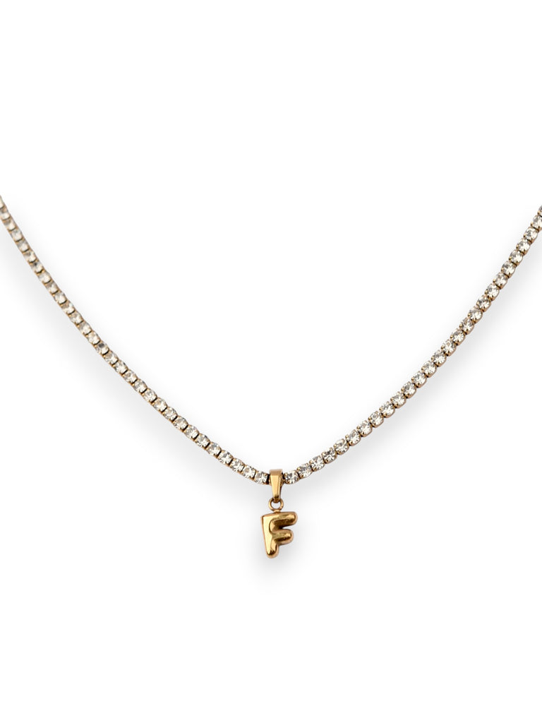 Sparkle in the spotlight with the Stage Name necklace—a CZ choker that shimmers with every move. Finished with a delicate gold bubble initial, it's the perfect piece for making your look feel personal and uniquely yours.