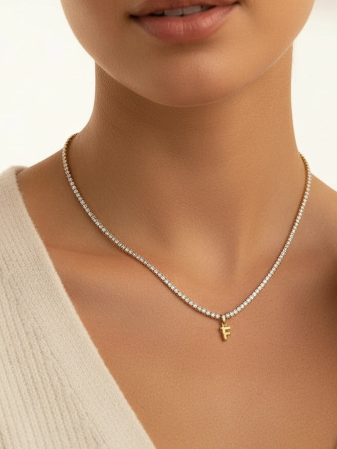 Sparkle in the spotlight with the Stage Name necklace—a CZ choker that shimmers with every move. Finished with a delicate gold bubble initial, it's the perfect piece for making your look feel personal and uniquely yours.