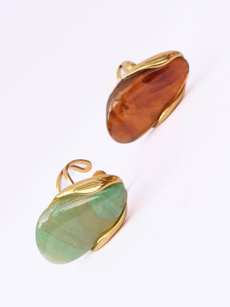Bold and expressive, the Whole Mood rings feature oversized, stone-like designs in rich amber and soft light green. Adjustable for the perfect fit, these statement rings bring all the energy—and all the style.
